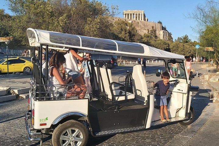Tuk Tuk ride around Athens city centre for one hour. Enjoy the view from the top of mount Lycabettus, feel yourself like walking around the city seated on an Electric Tuk Tuk.